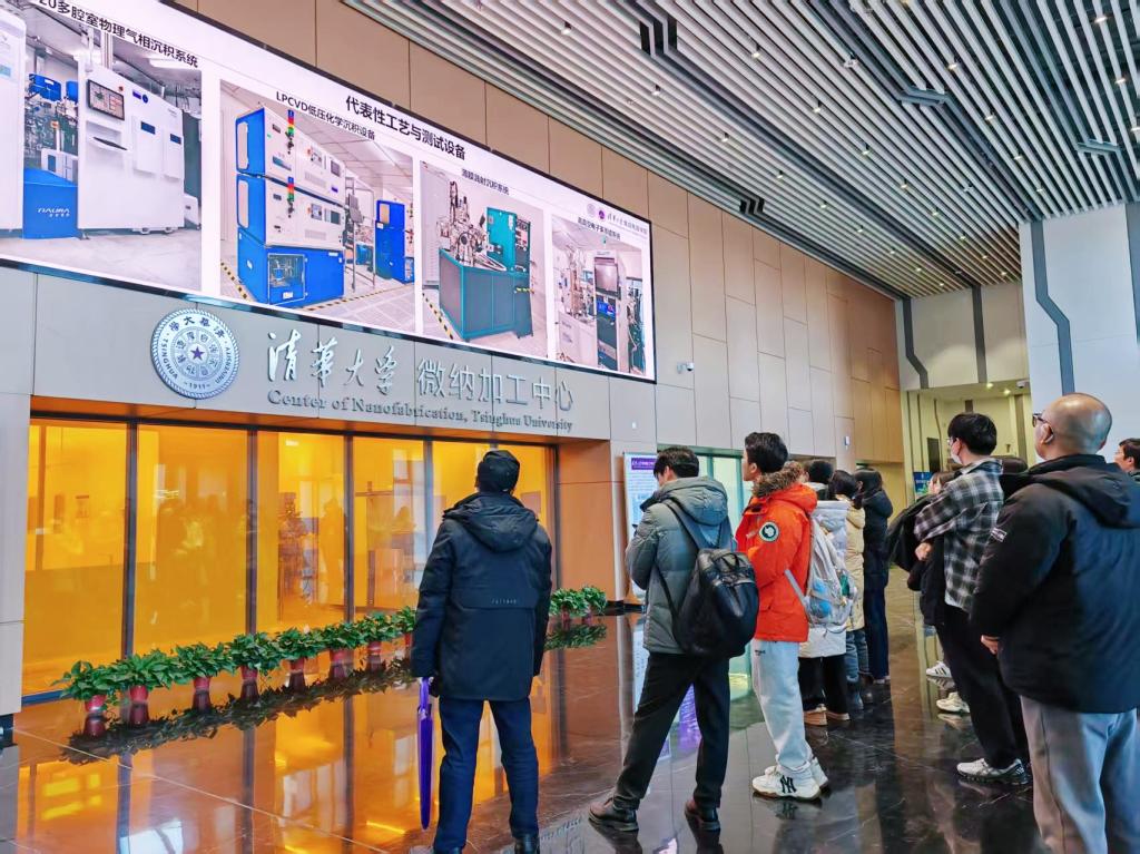 茶歇期间,与会师生驻足参观大会海报展,通过近距离观摩与互动交流,沉浸式体验微纳技术的前沿创新成果与微纳世界大赛获奖作品的独特魅力。部分与会师生在大会间隙参观了位于自强科技楼5号楼一层的中心新超净实验室。